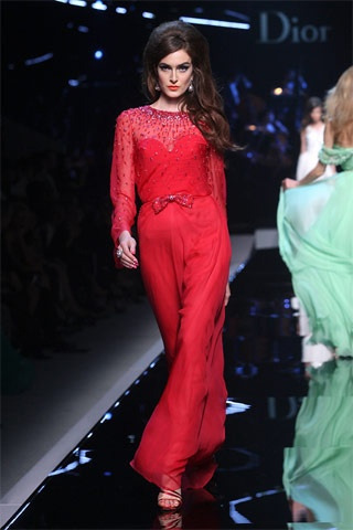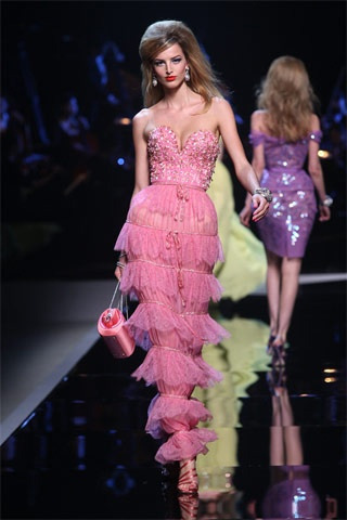 O romance não foi esquecido. Galliano apresentou também uma série de vestidos de renda com corsets e vestidos de festa estonteantes, com bordados finos, em materiais como organza de seda – tudo muito sedutor com ares de alta costura, para agradar a nova geração de clientes chineses privilegiados.