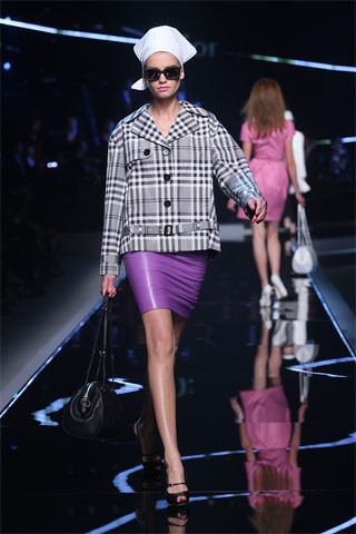 Assinaturas da marca, como a rosa, estavam em todos os lugares: desde estampas em casacos até aplicações em colares e bolsas que acompanhavam os looks da passarela. O famoso xadrez “Príncipe de Gales” ganhou nova forma em jaquetas e trench coats. Enquanto isso, um vestido xadrez gingham azul pálido com um “quê” de Bardot vinha com um corte inovador, em uma organza levíssima. Um couro superleve esculpia uma série de vestidos e tailleurs, acrescentando ainda mais emoção e sensualidade.