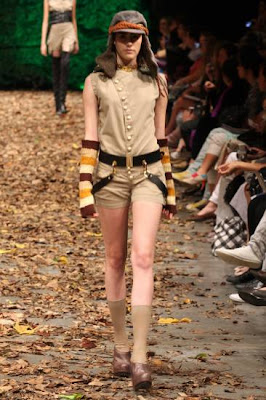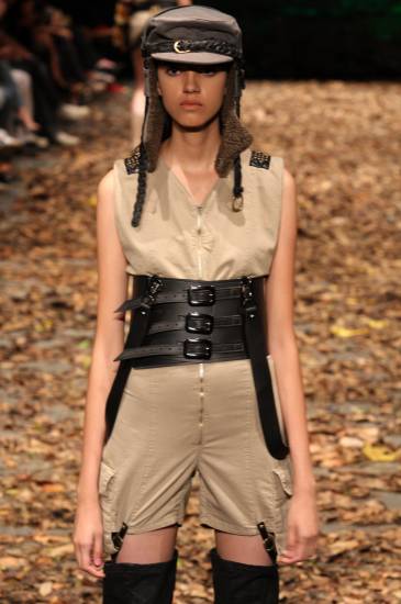 No segundo desfile da noite, a marca Yet Jeans usou o militarismo como fonte de inspiração. Folhas secas foram espalhadas, cobriram a passarela remetendo a um campo de batalha. A coleção apresentou cortes e cores militares, entre elas, o verde musgo, o preto e o dourado. Shorts e macaquinhos curtos combinados com botas ultra altas sensualizaram o estilo a princípio masculino.