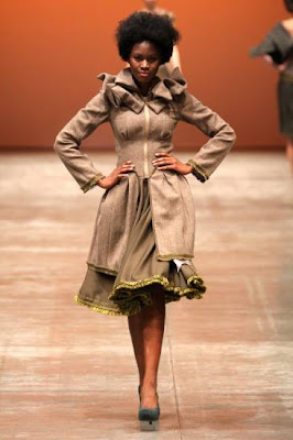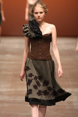 A passarela estava recheada de cataventos por todas as partes. Os que estavam sentandos na primeira fila do desfile ganharam cataventos pequenininhos para segurar. Tudo já começou diferente, com três modelos entrando pelo ''final'' da catway ao invés do começo. Elas se posicionaram em três focos de luz no que já deu para entender qual seria o estilo da coleção.