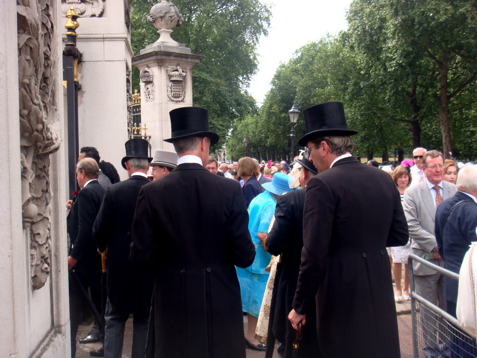 Aquele estilo de paletó um pouco mais comprido que o normal. Com esse traje, o charme se dá pela cartola. As mulheres usam chapéus e vestidos no joelho.